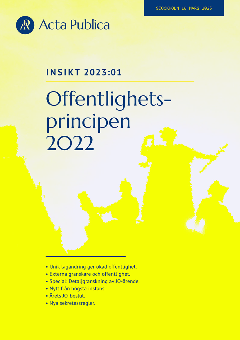 Acta Publicas rapport Offentlighetsprincipen 2022 ger helhetsbilden över vad som har hänt på offentlighets- och sekretessområdet under 2022. Rapporten fångar upp den senaste lagstiftningen, de viktigaste domarna och besluten, och anmärkningsvärda exempel på tillämpning av gällande lagar och regler.